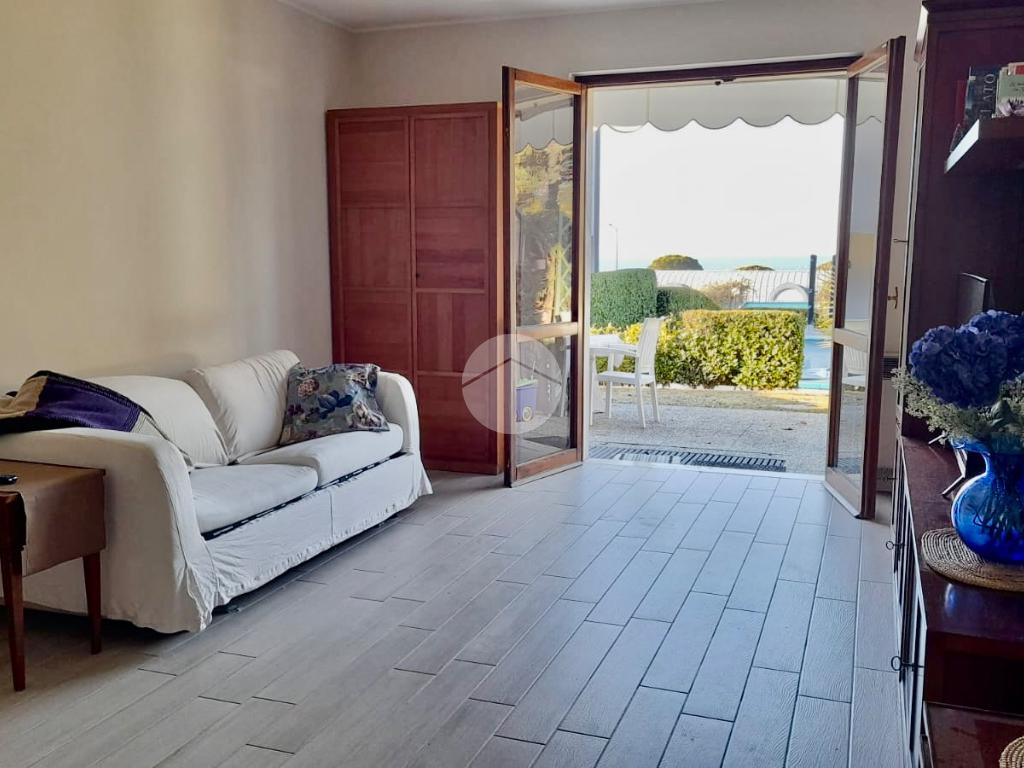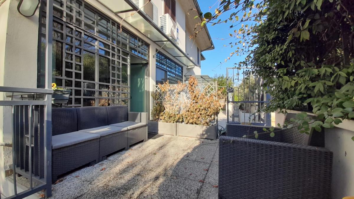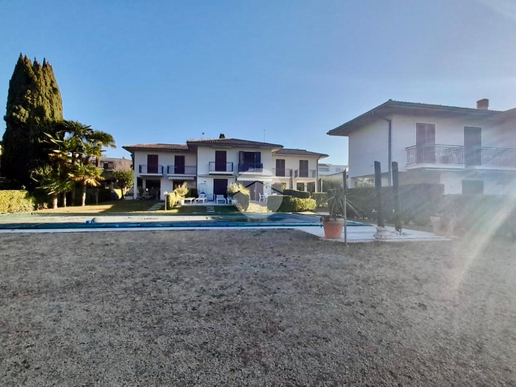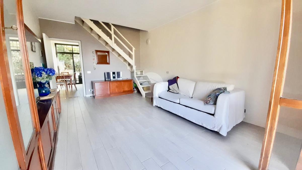 L’unità è inserita in piccolo residence con piscina e posti auto privati. Dall’ingresso privato si accede alla corte che introduce alla cucina abitabile e al salotto che si affaccia sul giardino e sulla piscina; al piano superiore troviamo le due camere matrimoniali, di cui una con balcone, e il bagno. Una scala esterna coperta conduce alla cantina e alla taverna, con bagno di servizio finestrato, che completa la proprietà.